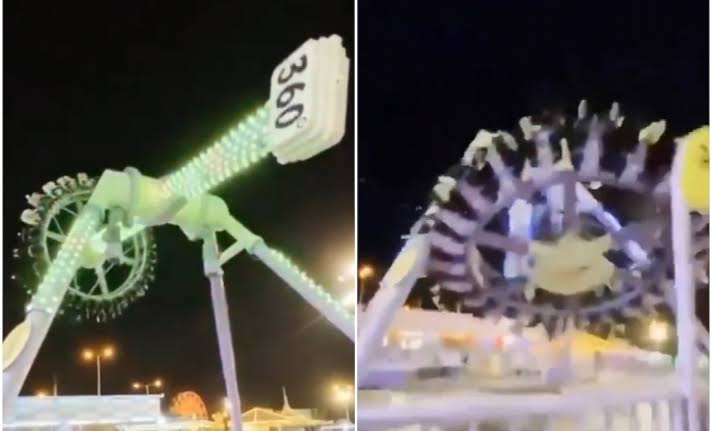 🎢💥 Momento de terror en parque de Arabia Saudita: atracción mecánica se quiebra en pleno vuelo; al menos 23 heridos 😱🚑