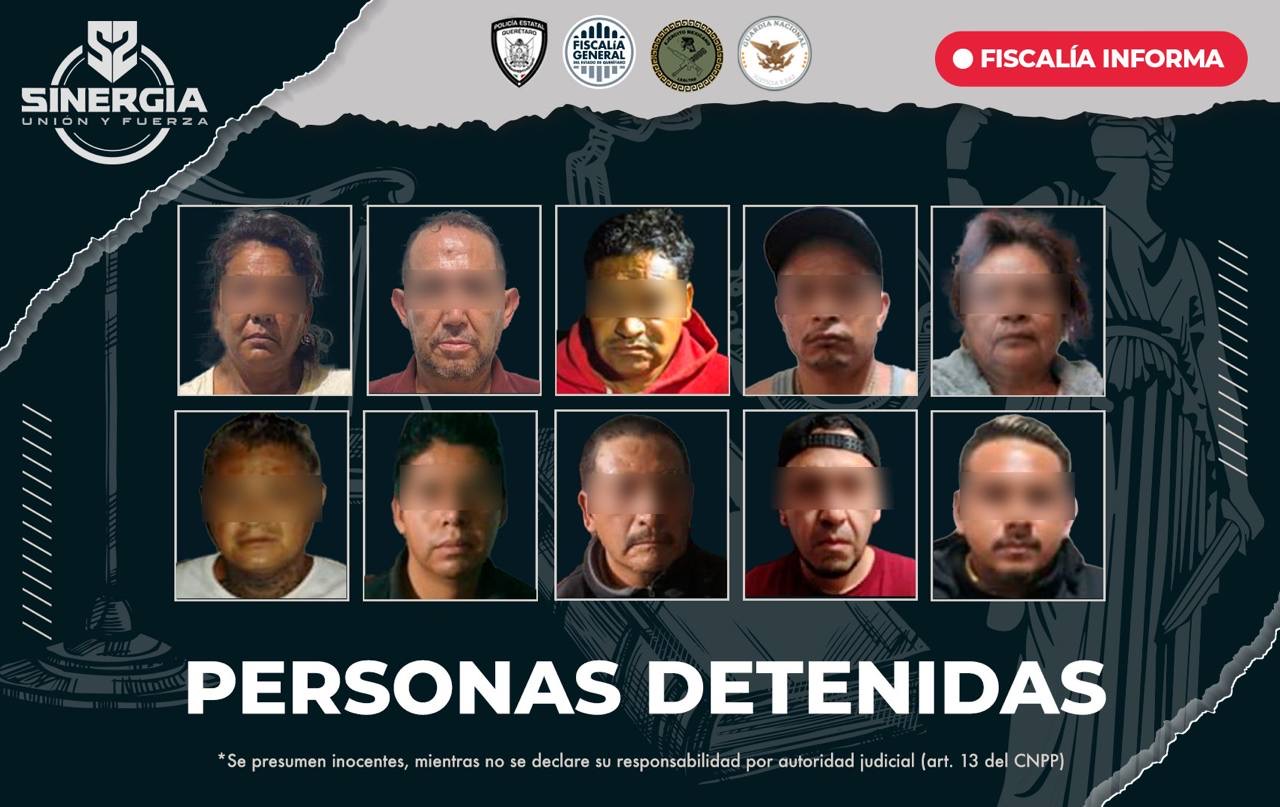 Las diligencias se realizaron en inmuebles ubicados en Colinas de la Piedad y Villas de la Piedad en El Marqués, la colonia Zapata Vive, la comunidad Jesús María y en Carrillo, con apoyo de la Policía Estatal, Guardia Nacional y Ejército.