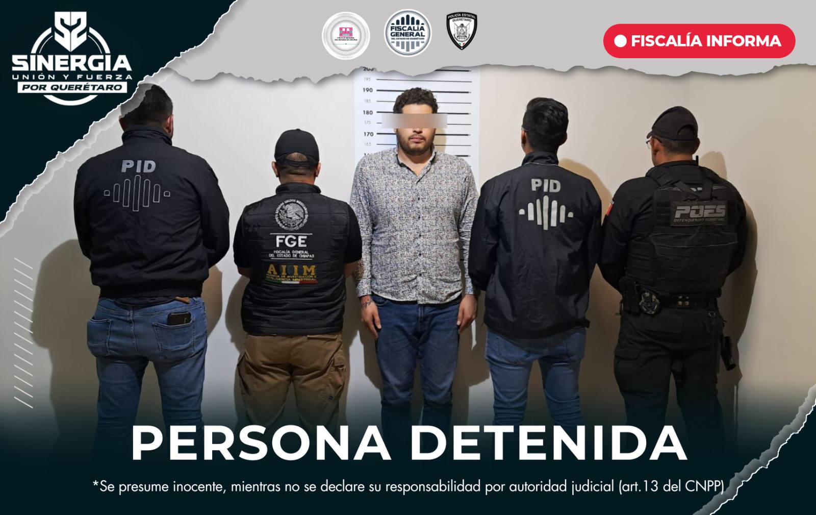 ¡Gran resultado de la coordinación interinstitucional! La Fiscalía General del Estado de Querétaro (FGE), en sinergia con la Fiscalía de Chiapas y la Policía Estatal, logró la detención de Miguel “N”, presunto autor del delito de homicidio calificado cometido en el estado de Chiapas. 🔍