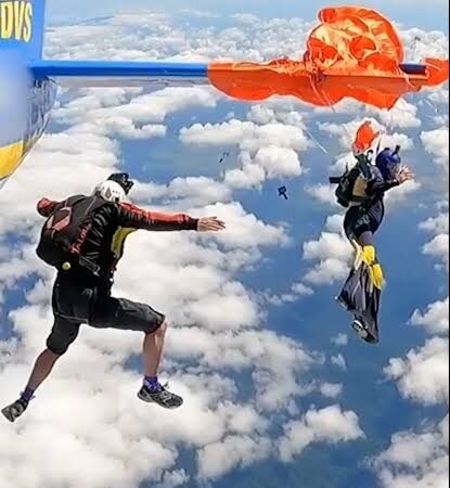😱🪂 Terror en el aire: un paracaidista quedó colgado de la cola de un avión en pleno salto ✈️😨