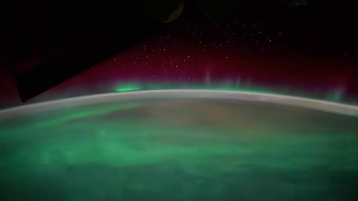 🌌🚀 NASA capta desde el espacio el “nacimiento” de una aurora boreal, mostrando la Tierra envuelta en un espectáculo de luces — verdes, rojas, rosas y lima — desde la Estación Espacial Internacional (EEI).
