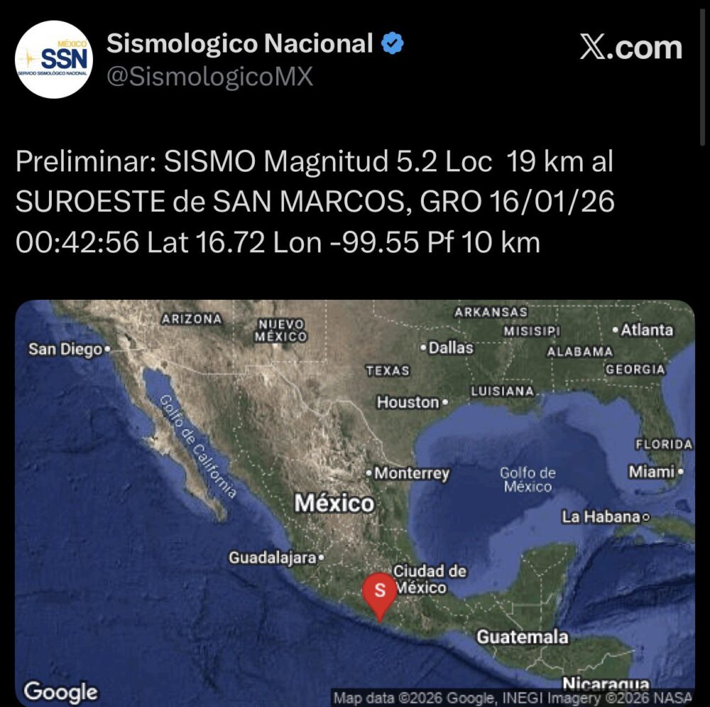 🌎⚠️ Nuevo sismo en México este 16 de enero: