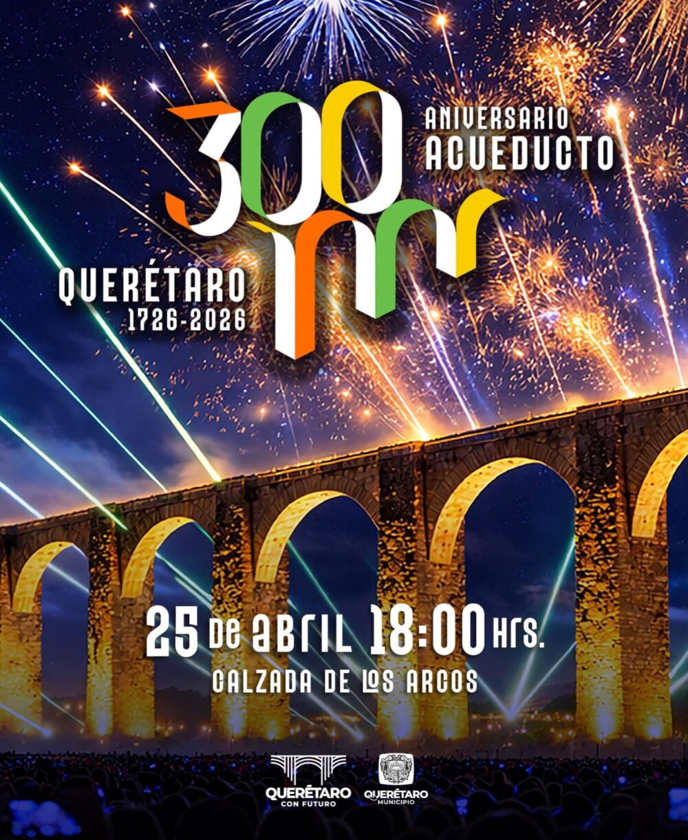 El municipio de Querétaro realizará un festejo por los 300 años del Acueducto de Querétaro el sábado 25 de abril. Las actividades iniciarán a las 18:00 horas y se desarrollarán en cinco escenarios.