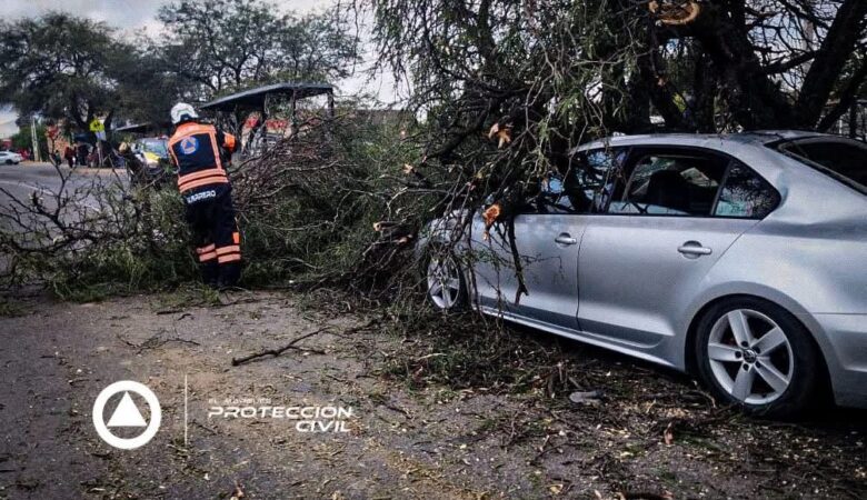 Protección Civil retira árbol caído sobre vehículo en El Marqués